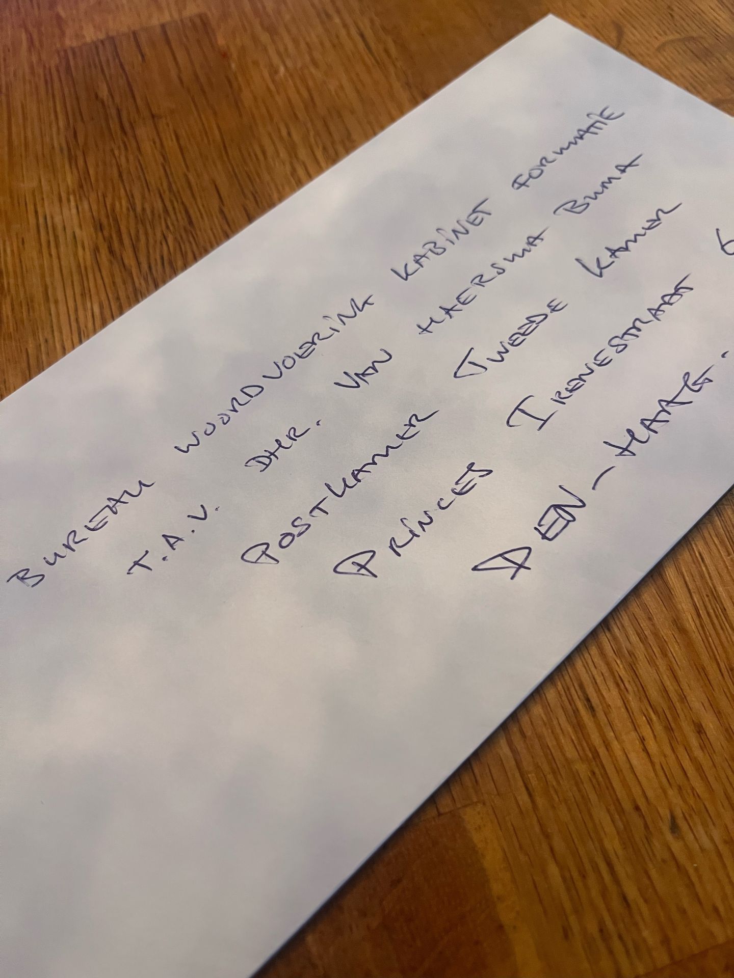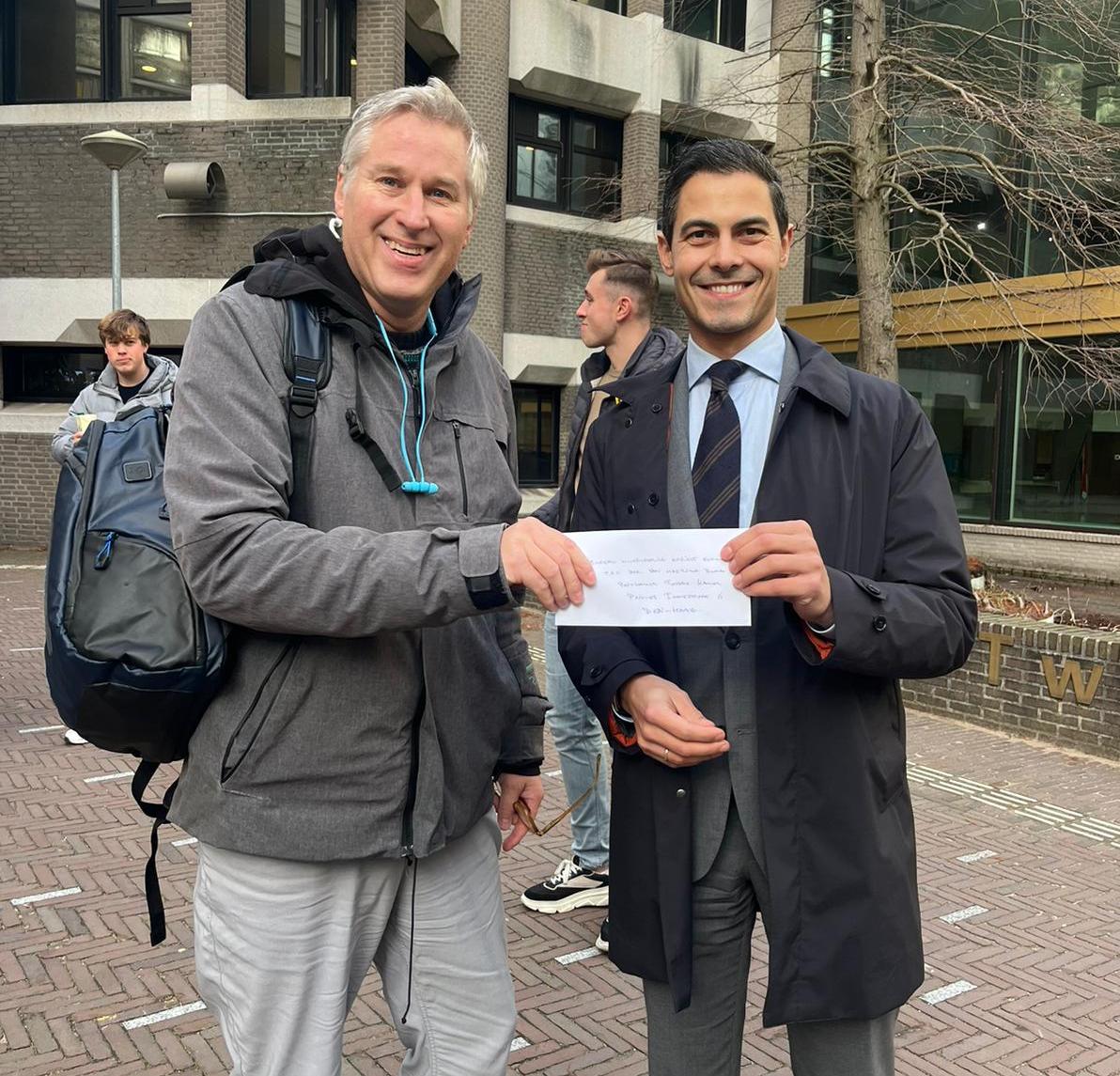 On his way to the mail room of the House of Representatives, Peter Scheijgrond happened to run into Minister Jetten and was able to hand over the letter in person.